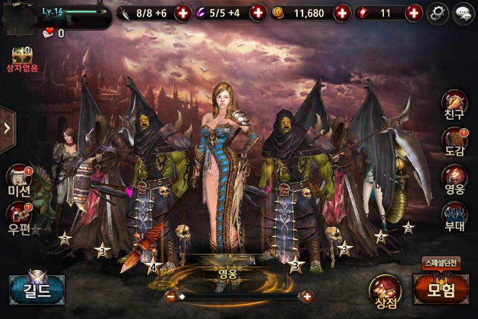 대칭놀이.같은 부대원을 넣을 수 있으니 이런 재미가 있네요골든에이지는 스킬만 다르면 같은 애들이라도 데려갈 수 있거든요비록 저 뒤쪽은 대칭이 아니지만요8명이나 데리고 다니니까 메인창이 아주 그냥 풀이에요덕분에 사냥 나갈때도 완전 떼쟁ㅋ몹도 보스는 한마리지만 잡 몹 숫자 많으니까 붙으면 보는 재미가 쏠쏠합니다.