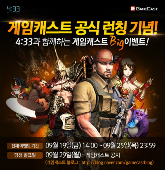 게임캐스트라고 이미 베타버전을 사용해본바 있는데요 모바일게임들과 연동되서 게임녹화 음성녹음 그리고 셀프캠촬영까지 모든게 가능한 어플이여서 참 유용하게 사용했습니다.이번에 베타버젼 타이틀 때고 정식으로 출시됬다고 합니다. 정식 출시기념으로 여러가지 오픈이벤트를 하고있다고 합니다.블레이드,샌드스톰,수호지,활 이 4가지 게임중 한가지 게임을 녹화하신 뒤 업로드 시키시면 이벤트 참여가 자동으로 이루어지는데요 상품만 봐도 ㅎㄷㄷ 하네요.. 겔럭시 노트4라니 ...녹화 안하시는분들은 게임캐스트를 접속해서 433이벤트에 해당하는 영상에 댓글만 달아주셔도 겔럭시알파와 문화상품권을 받을 수 있는 기회가 제공된다고 하네요!또 페이스북 게