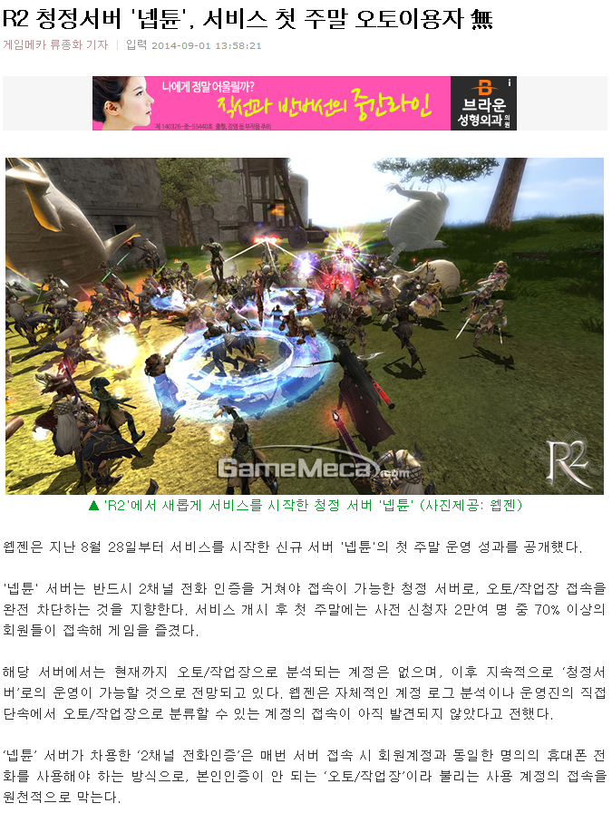 메카에도 기사가 뜰 정도로 괜찮은 운영인가 보네요.확실히, 사람 좀 많긴 했는데 흠. 일단 9검 5방의 마력(?)이이렇게까지 서버를 살아나게 하네요 ㅋㅋ일단, 작업장 오토 막는 취지 자체는 정말 최고라고 생각합니다.레벨 11만 찍으면 9검 5방을 주는것도 좋구요.만렙까지도 충분한 장비니까 뭐.유저 격차 역시 만렙제한으로 완화되었으니, 이번 운영 초반은 성공이라고 볼 수 있을 듯?