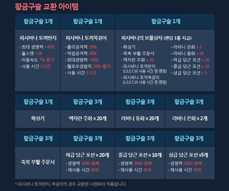 항상 새로운 이벤트를 지속적으로 제공해서 좋댜~근데 중요한건 이 이벤트들이 게임에만 집착하게끔 만드는 이벤트이기 보다라이트한 유저들을 좀 배려해주는 이벤트랄까??이번에 PC방 이벤트 황금구슬 이벤트랑 카브임서버 특혜이벤트 한다고 하네여..PC방에서 있으면 30분마다 황금구슬이 쏟아진다고 합니다.그럼 그 황금구슬로 특별한 아이템들을 구매할 수 있는데 생각보다 황금구슬이 얼마 안들기때문에 시간조금 투자하면 다 살수있을듯 ㅋ
