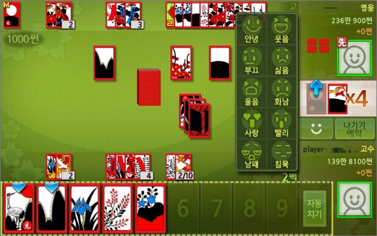 개인적으로 맞고 게임을 굉장히 좋아하는데요이번 추석연휴 시골에 갔다가 올라오는 귀성길에아버지께서 운전을 하시고 어머니가 옆에 타시고 저는 뒤에서 열심히 또 맞고를 쳤드랬죠...그때 스샷 찍을 경황이 없어서 비슷 한 상황이미지를 찾아옴...ㅋㅋ상황을 이랬음 두번 밀린 상황 x8배인상황..상대는 x4짜리 미션도 했음..거기다가 2고 패는 수두룩히 남았는데...난 꼴라 피두장...아 진짜 완전 올이이구나 ㅊ루제ㅔㅁ애ㅏㅈㅁ애ㅏㅓㅔ저ㅐ렙 멘붕이 왔던 상황인데...쓰리뻑을 한거임 ㅋㅋㅋㅋ 극적으로 ㅋㅋㅋㅋ나도 모르게 아버지 의자를 발로 차며 육성으로 18!!! 을 외쳐 버림...ㅋㅋㅋㅋ순간 차엔 정적이 1초 흘