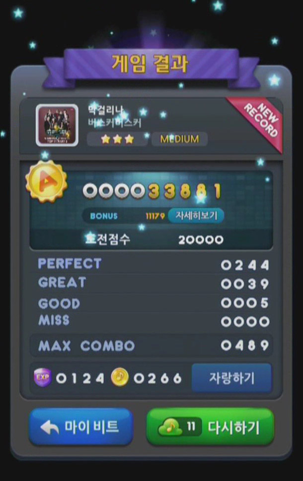 점수가 그렇게 높은편은 아니지만 올콤보로지인중에 2등 탈환 ㅋㅋㅋㅋㅋㅋ 1위는 좀 더연습하면 탈환 가능할듯. 랜덤상자 업데이트되고부터 점수가 무조껀 딱 고정되서 나오는게 아니라좀 더 경쟁하는맛이 생긴거같음. 근데 전체 랭킹1위는 도대체 사람이긴 한건가....점수가... 후덜...전체 1위는 바라지도 않고 지인중 1위라도 .........