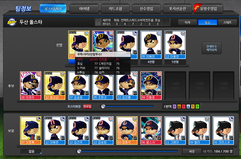내가 마구마구에서 두산으로 플레이중인데 오늘은 선발 기념으로니퍼트 씀 ㅋㅋㅋㅋ 오늘 나이트하고 누가 더 잘할런진모르겠지만 개인적으로는 두산이 이겼으면 좋겠음.ㅋㅋㅋㅋ이제 1시간 10분 남았는데 그동안 겜이나 하면서 기다려야겠음.ㅋㅋ 두근두근~ㅋㅋㅋ