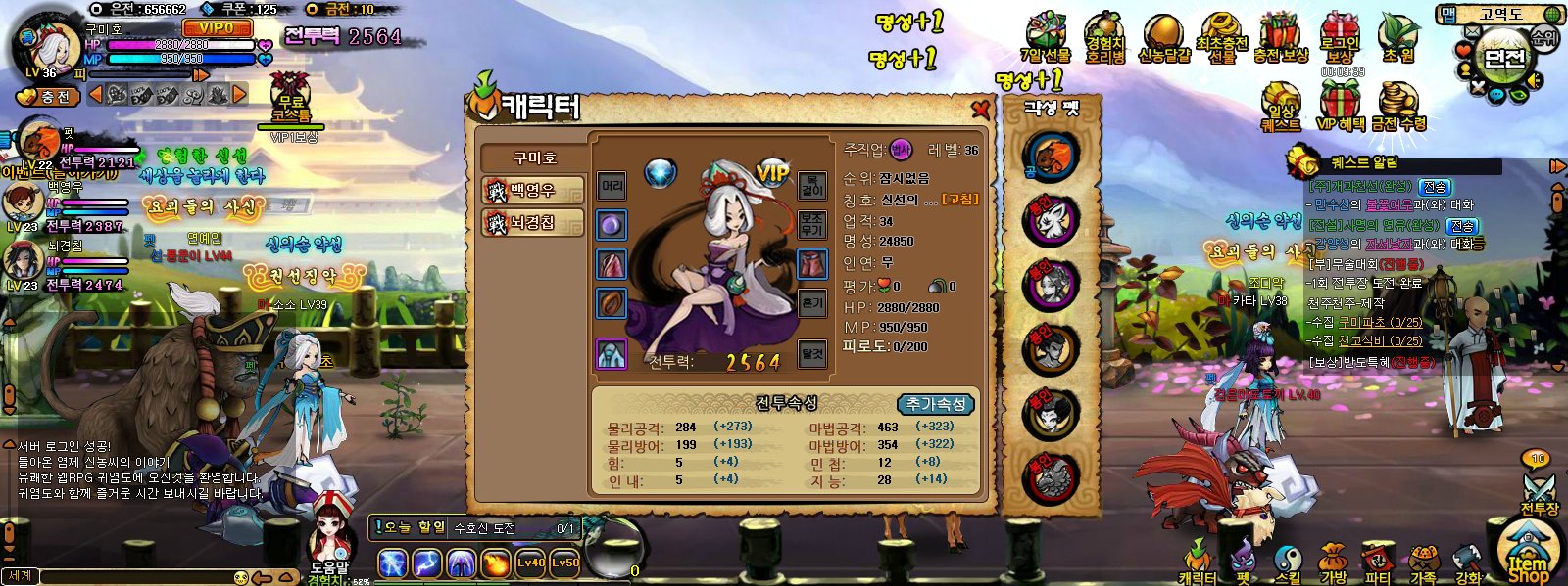 뒤에서 지원하는 형태의 전투를 진행합니다. 개인적으로는 전투방식이 RPG웹게임에선 이게 최고라고 생각되네요.