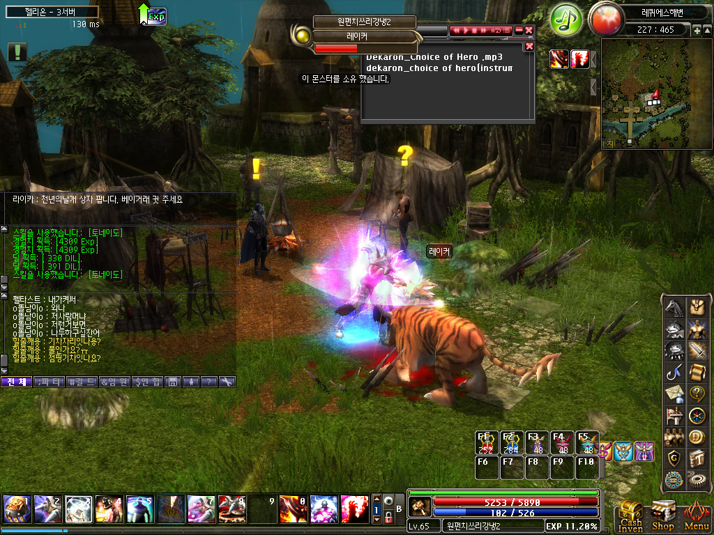 오늘 드뎌 포스아쳐로 대막의 베틀모드를 익히고 플레이 했습니당 솔직히 무기바꾸고 버서커모드 비슷한거라서 1.5배 정도의 데미지만 강해질줄 알았는데 말그대로 폭딜모드 입니다. ㅋㅋ 이펙트도 강력하고 한방한방 평타나 스킬 갈기면 200~400대 뜨던 데미지가 가뿐하게 1000이 넘어가니 한층 사냥하기가 편해지더군요 하지만 공속이 느린게 단점이라PK를 하면 일반무기로 하는게 더 효율적이라는 사실 ㅎㅎ