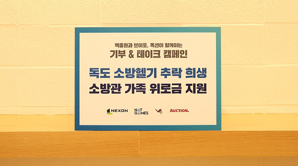 넥슨은 24일, 자회사 넷게임즈에서 개발한 모바일 MMORPG, 'V4'가 옥션과 공동 기획한 100원 기부딜 수익금 전액을 대한민국재향소방동우회에 기부했다고 밝혔다. 넥슨은 서울 역삼동 이베이코리아 본사에서 넥슨 윤경이 IP4그룹실장, 이베이코리아 홍윤희 기업홍보팀 이사, 대한민국재향소방동우회 홍준성 119소방복지사업단장 등이 참석한 가운데 기부금 1000만 원을 전달했다2019.12.24 11:39 -