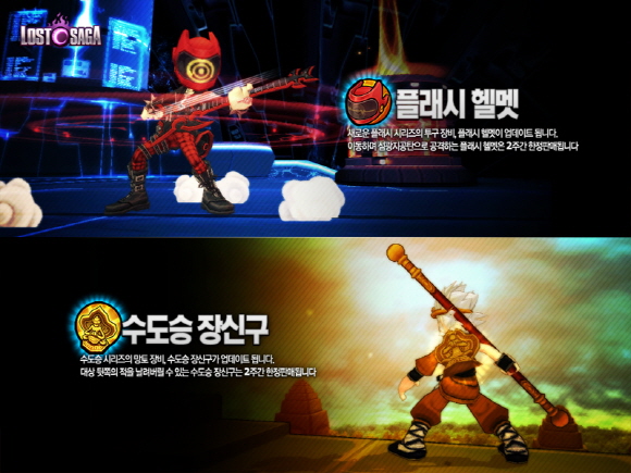 조이맥스의 자회사 아이오엔터테인먼트가 개발하고 삼성전자에서 서비스 중인 대전액션 온라인게임 `로스트사가` 가 17일(목), 신규 장비 2종을 업데이트했다.