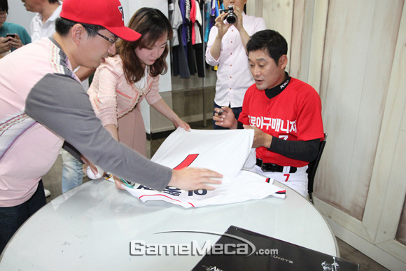 ▲ 이종범 선수의 싸인을 원하는 기자들의 행렬이 줄을 이었다
