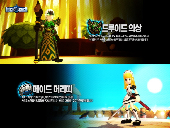 ▲ 새롭게 추가되는 아이템 `드루이드 의상`, `메이드 머리띠`
