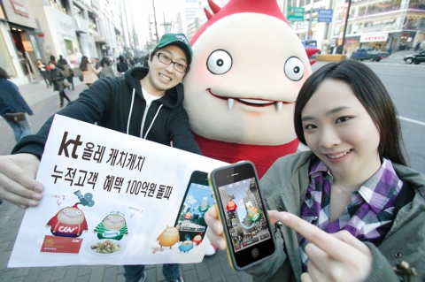 이용 고객 120만명을 돌파하며 인기앱으로 자리 잡은 ‘올레캐치캐치’는 위치기반의 캐릭터 잡기 게임으로 구성되며, 장소나 시간에 따라 다르게 나타나는 제휴사 캐릭터를 잡으면 무료이용권, 할인쿠폰 등을 받을 수 있어 재미와 혜택을 동시에 느낄 수 있다는 평이다.