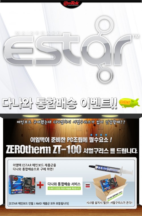 이엠텍아이엔씨(대표 이덕수 www.emtekinc.com)는 다나와(대표 성장현 www.danawa.com)와 함께 다나와 통합배송 서비스를 활용한 ESTAR 메인보드 판촉 행사를 진행한다.