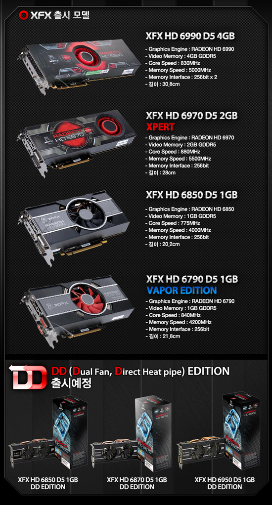 HD6790 제품을 시작으로, XFX의 새로운 쿨링시스템이 적용된 DD Edition 모델에 이르기까지