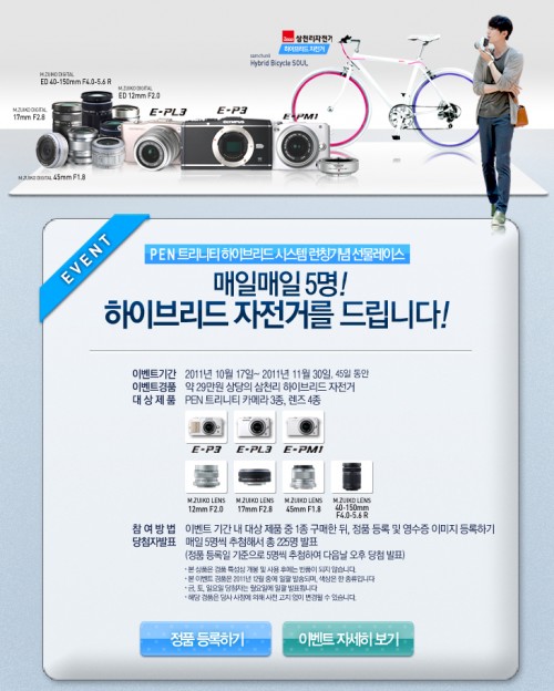 이번 행사는 PEN 3종(E-P3,E-PL3,E-PM1) 또는 PEN 전용 렌즈 4종 (M.ZUIKO LENS