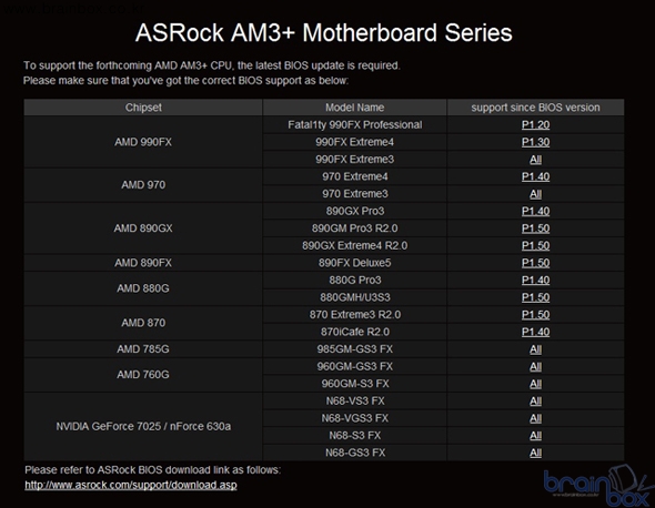 ASRock 메인보드의 국내공인 1호 대리점인 ㈜에즈윈(대표 박노선)에서는 ASRock 메인보드의 AM3+ CPU 지원 바이오스 및 메인보드 리스트를 공개했다.