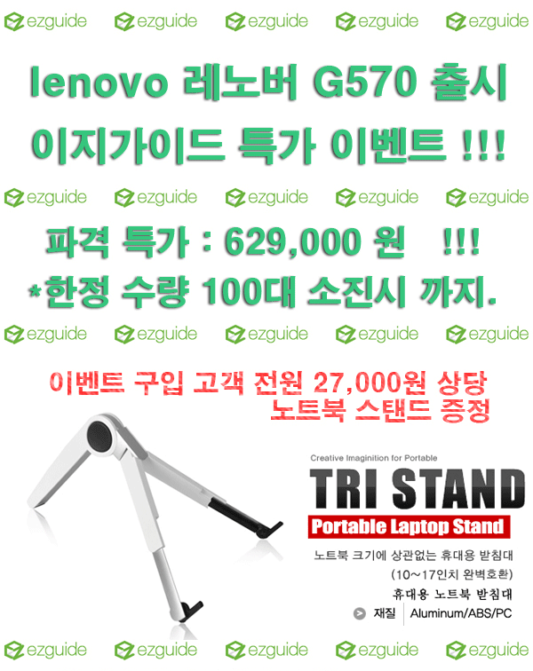컴퓨터 전문 쇼핑몰 이지가이드 (http://www.ezguide.co.kr 대표:신국도)는 세계적인 노트북 메이커 LENOVO (레노보)사의 LENOVO 아이디어패드 G570-59312748 모델을 출시하면서 고객 이벤트를 실시한다고 밝혔다.