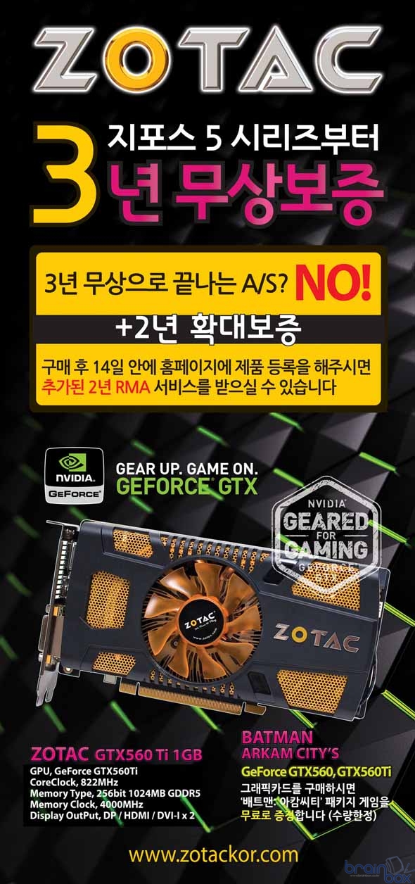 그래픽카드와 메인보드 미니PC의 선도업체인 조텍코리아 (대표이사 김성표, www.zotackor.com)에서 그래픽카드 지포스 5시리즈 이상 무상3년보증 A/S 시행을 기념하여 삼삼한 이벤트를 진행한다
