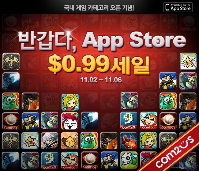 애플 앱스토어 한국 게임 카테고리 오픈 기념, 컴투스 전 게임 할인 이벤트 - 컴투스, 애플 앱스토어 한국 게임 카테고리 오픈 기념, 전 게임 $0.99 판매 이벤트 실시
