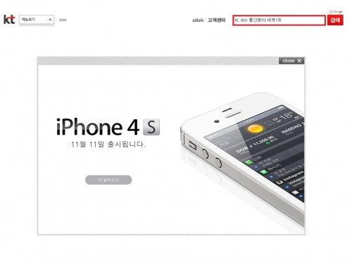 한편 아이폰 4S 예약 가입 방법은 4일 자정 0시부터 SKT는 T스마트샵(www.tsmartshop.co.kr)및 T world 매장에서 예약 신청을 접수하며 KT는 #4545 문자, 모바일웹(m.olleh.com), 올레닷컴(www.olleh.com), 전국 올레 매장 및 KT 플라자 등 전방위로 아이폰 4S 신청이 가능하다.