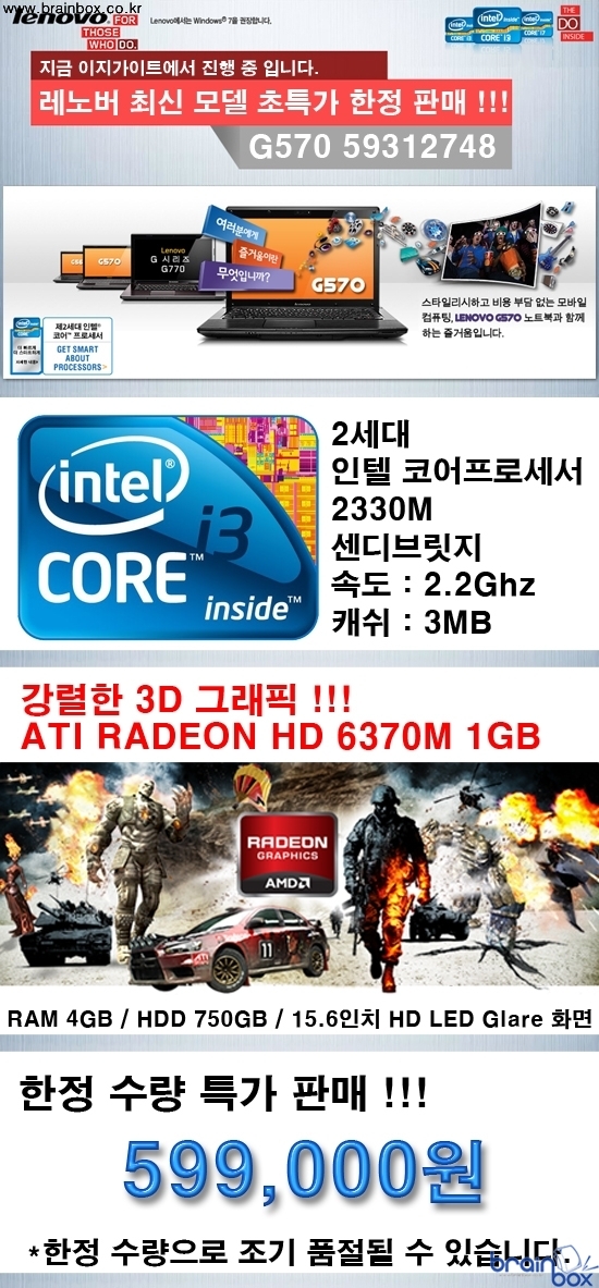 LENOVO 아이디어패드 G570-59312748 모델을 파격가에 한정판매에 들어갔다고 밝혔다.
