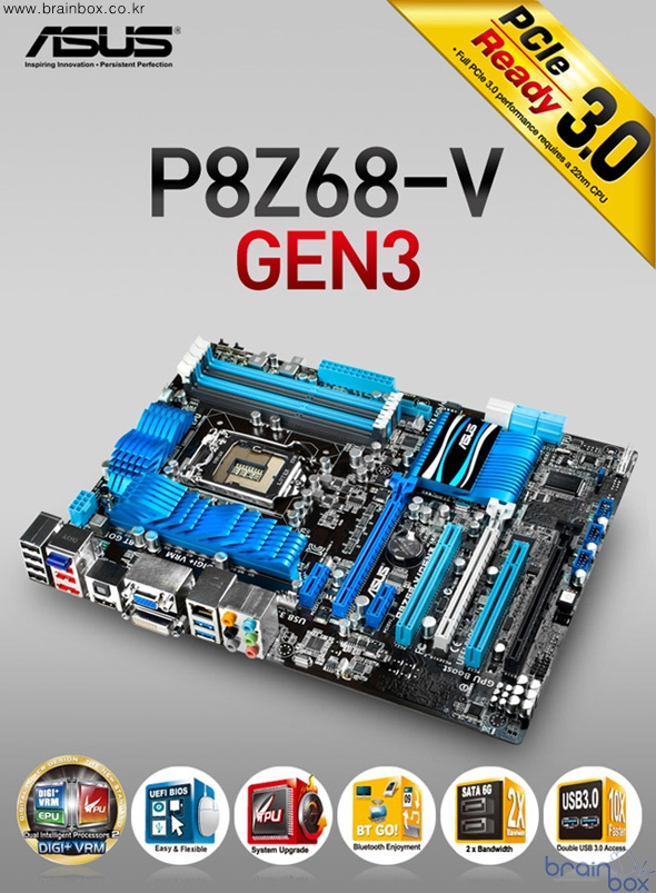 P8Z68-V GEN3는 차세대 PCI express 3.0(이하 PCIe 3.0)를 하드웨어와 바이오스 측면에서 모두 완벽하게 지원함은 물론 USB 3.0의 속도와 동작환경까지 업그레이드된 더 빠르고, 더 진화된 GEN3 메인보드라 할 수 있다. GEN3란 그래픽카드 등에 널리 쓰이는 PCI express의 최신규격인 PCI express 3.0(이하 PCIe 3.0) 규격을 지원하는 메인보드를 뜻한다.