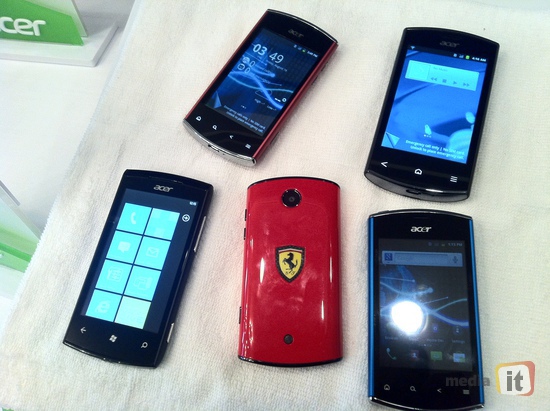 윈도우 폰 역시 산뜻하게 손에 쥘 수 있었고 움직임도 가볍다. 특히 에이서가 후원하는 F1 페라리팀의 로고와 컬러가 들어간 안드로이드 폰도 눈길을 끌었다. 아쉽게도 에이서는 아직 한국에 스마트폰을 유통할 계획은 없다고 밝혔다.
