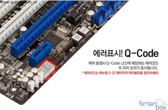 메인보드에 표시되는 Q-Code를 통해 사용자가 어떤 시스템 상의 문제가 있는지도 즉시 파악이 가능하다. P9X79 PRO에 적용된 USB 바이오스 플래시백 기능을 통해 CPU나 RAM이 없이도 전원만 연결한 상태에서 간단하게 바이오스 업데이트가 가능하다.