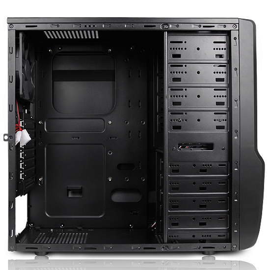 선호도가 높은 풀매쉬 스타일의 베젤 구조, 앞면의 120mm LED팬을 포함한 2개의 120mm 쿨링팬을 통해 시원한 시스템 환경을 구현하고, 최대 6개의 HDD를 달 수 있다.