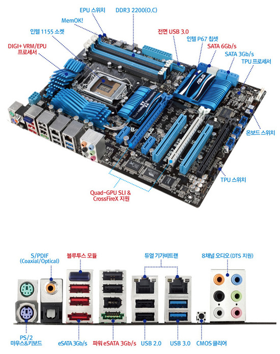 6G, USB 3.0 전면 브라켓 등이 포함된 고급형 메인보드로 아수스의 독자 통합형 디지털