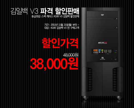 PC 주변기기 업체 쓰리알시스템(3R SYSTEM, www.3rsys.com 대표 류정무)은 미들타워 케이스 'K100 김일백 V3'의 가격을 인하한다고 밝혔다.