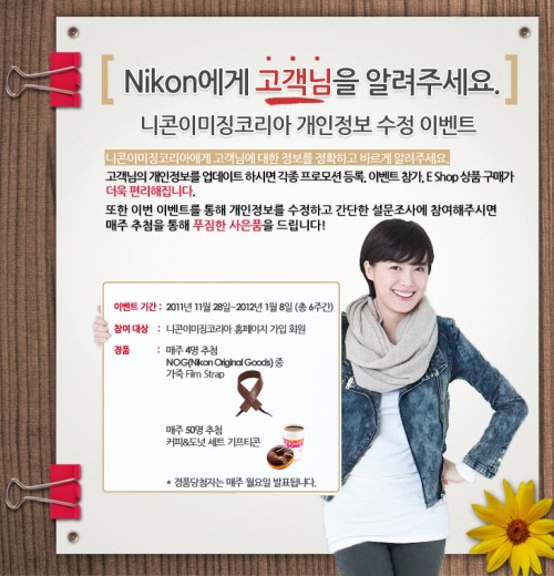 니콘이미징코리아(대표 우메바야시 후지오 www.nikon-image.co.kr)는 다양한 고객 서비스를 안전하게 제공하기 위한 ‘개인정보 수정 이벤트’를 개최한다.