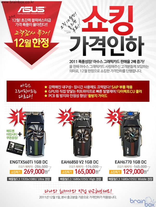 DC가 3만원 가량, EAH6850 V2 1GB DC, EAH6770 1GB DC가 각 각 2만원 가량 인하된 파격적인 가격으로