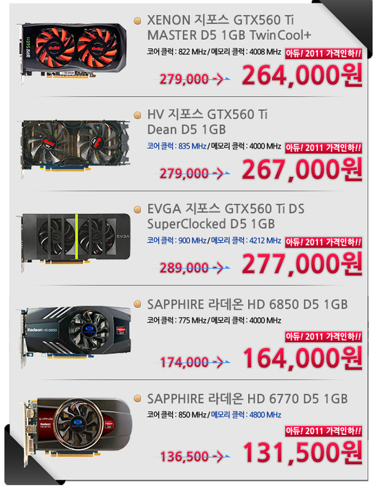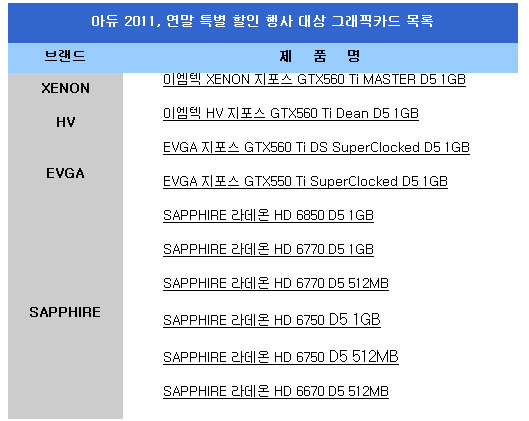 2011, 인기 그래픽카드 10종 특별 할인 이벤트'라는 주제로 열리는 이번 행사는 최근