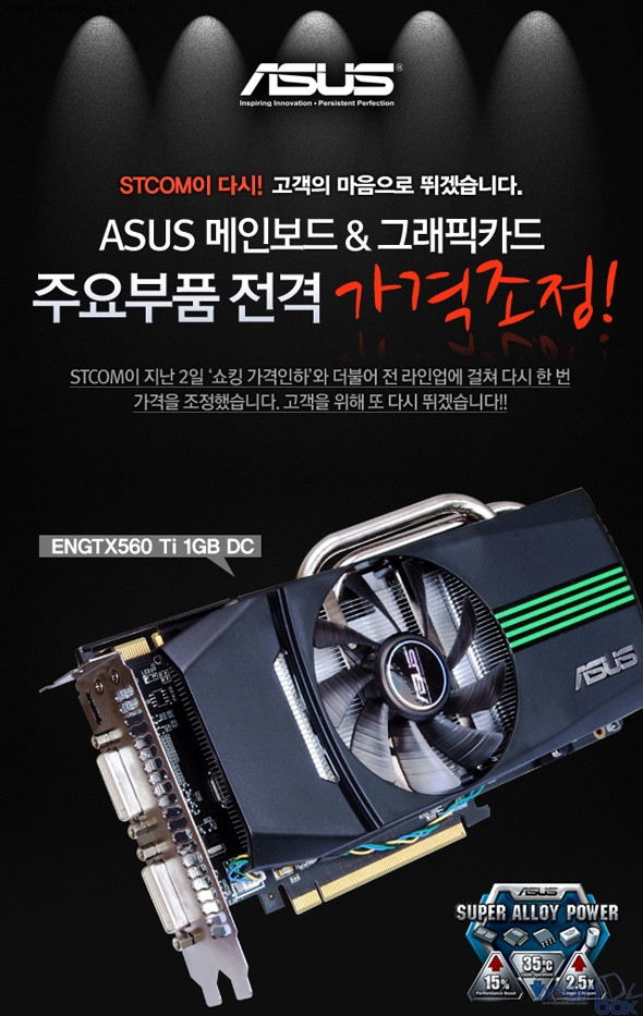 대폭인하는 아니지만 다 함께 나누자는 마음의 ASUS 27종 제품 가격조정 진행 ASUStek사의 국내유통사인 에스티컴퓨터(http://www.stcom.co.kr , 대표 서희문)는 지난 2일 단행된 ASUS ENGTX560Ti 1GB DC, EAH6850 V2 1GB DC, EAH6770 1GB DC 등 그래픽카드 3종에 대해서 약 10%의 쇼킹가격인하를 전격적으로 단행한데 이어 다른 주요 제품군 2종에 대해서도 전반적으로 가격을 조정했다. 이번 가격조정은 2011년 STCOM이 유통하는 ASUS 주요 제품군에 보내주신 많은 고객님들의 사랑에 보답하는 차원에서 메인보드 11종, 그래픽카드 16종에 대해서 전격적으로 단행됐다.