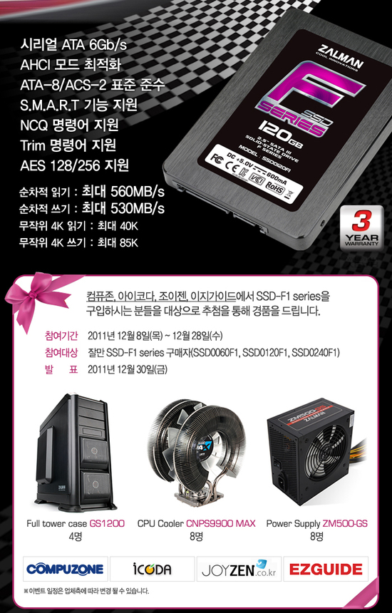 잘만은 신제품 출시를 기념해 아이코다, 조이젠, 이지가이드 등에서 경품 이벤트를