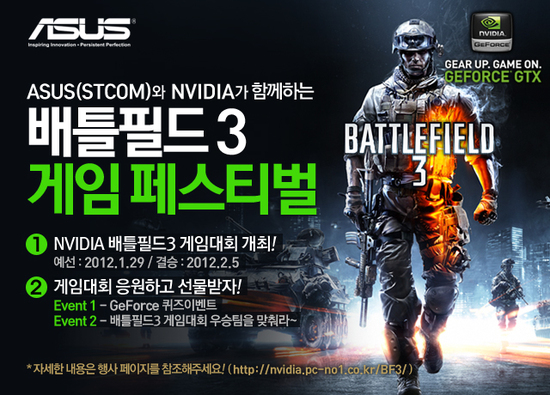 NVIDIA 이벤트 페이지(nvidia.pc-no1.co.kr/BF3/)에서 진행되며 예선전은 1월 29일