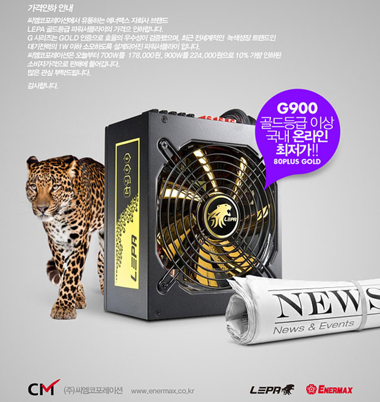윤창효)은 에너맥스에서 직접 제조한 파워서플라이 'LEPA G 시리즈 700/900W'의 가격을