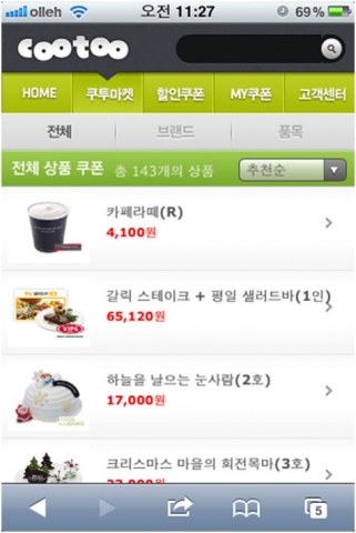 쿠투는 트위터, 페이스북 등 900만 SNS 사용자와 2,000만 ‘스마트 모바일 기기’ 사용자를 위한 ‘e쿠폰’ 서비스. 트위터와 페이스북 유저라면 누구나 별도의 회원가입이나 어플리케이션 설치 없이 쿠투사이트(www.cootoo.co.kr)나 모바일웹(m.cootoo.co.kr)에 접속해 기존 SNS 계정 인증만으로 간편하게 ‘e쿠폰’을 구매하고 선물 할 수 있다. CJ E&M은 쿠투 서비스와 관련해 최근 특허 등록을 완료했다.