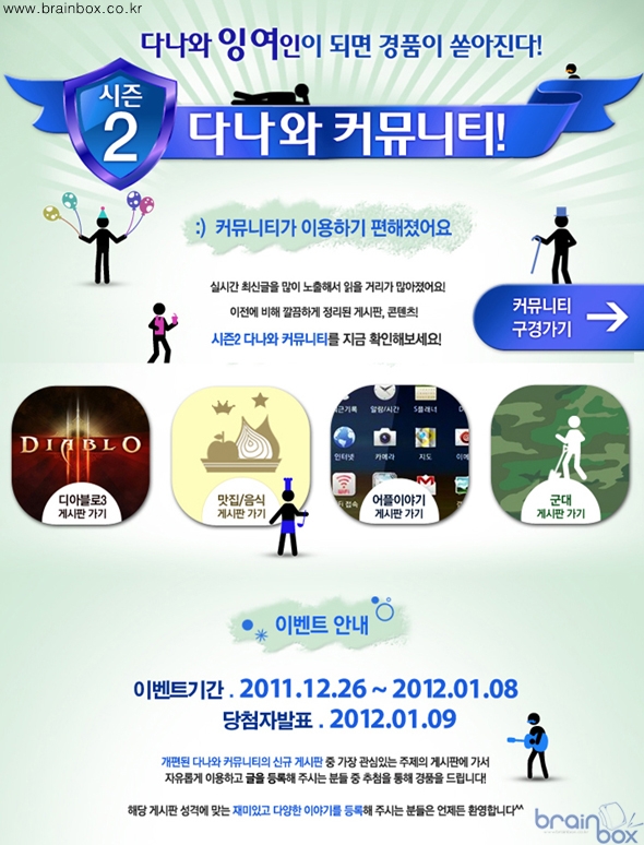 가장 두드러지는 부분은 실시간 정보다. 최근 작성한 자신의 게시물은 물론, 답변 등을 한번에 확인할 수 있는 정보창을 제공한다. 메인 영역에선 상품에 대한 의견이 즉각적으로 업데이트 되어 일 1천여 개에 이르는 상품 관련 게시물을 실시간으로 모니터링 할 수 있다. 또한 다나와는 디아블로3, 맛집/음식, 어플리케이션, 군대를 주제로 게시판 영역을 신설하였다. 사회적으로 공감대가 많이 형성될 수 있는 내용을 주제로 하여 유저 참여 폭을 넓히고 나아가 재미있고 자유로운 환경을 조성하겠다는 목적이다. 활동을 독려하기 위해 커뮤니티 내 우수회원에게 상품을 제공하는 커뮤니티 상시 보상제는 이전과 같이 유지된다. 다나와는 이번 개편으로 회원들이 한층 쉽고 편하게 이야기를 나눌 수 있을 것으로 기대했다. 다나와 커뮤니티 담당 김도화 사원은 “그간 다나와 커뮤니티는 전문성 중심으로 이루어져 다소 딱딱한 분위기가 드러났었다”라며 “편의성을 높이고 맛집 등의 흥미로운 공간도 마련해 놓았으니 편하게 이야기를 나누는 공간으로 인식해 주셨으면 한다”고 말했다. 더불어 다나와는 커뮤니티 개편을 맞아 특별 이벤트를 진행한다. 1월 8일까지 진행되는 이번 이벤트는 커뮤니티 신규 게시판에 게시물을 등록하면 자동으로 참여된다. 참여자 중 102명을 추첨하여 삼성 SSD830 시리즈 등 풍성한 경품을 제공한다. 이벤트에 대한 자세한 내용은(http://event.danawa.com/110224_community)에서 확인할 수 있다. |