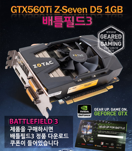 배틀필드3 정품 쿠폰이 제공되는 'ZOTAC GeForce GTX 560 Ti Z-Seven 배틀필드3'