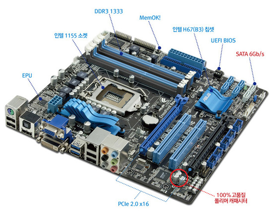 P8H67-M PRO'는 100% 고품질 폴리머 캐피시터를 채용했고, 아수스의 프로텍트 3.0