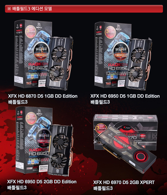 XFX 배틀필드3 에디션 패키지는 총 4개 모델로 'XFX HD6970 D5