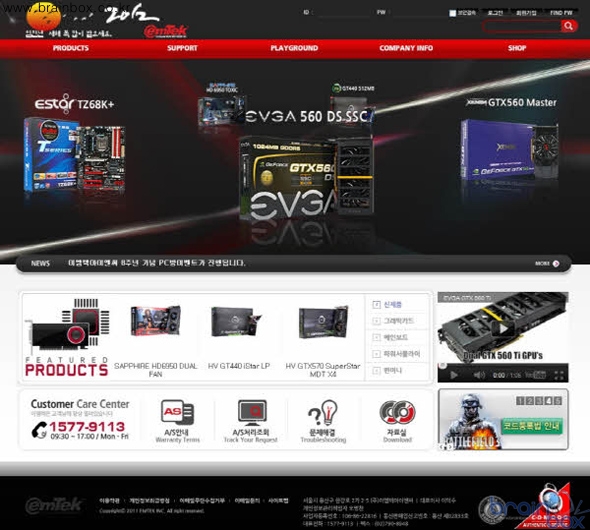 국내 컴퓨터 컴포넌트 시장을 선도하고 있는 (주)이엠텍아이엔씨(대표:이덕수, www.emtekinc.com)는 기업 공식 홈페이지에 추가로 온라인 쇼핑몰을 구축하고 이엠텍의 다양한 상품을 손쉽게 구매할 수 있도록 하였다. (주)이엠텍아이엔씨 쇼핑몰은 그래픽카드와 메인보드에 사용되는 각종 부자재 판매와 리퍼비시(수리 재생) 제품을 염가에 판매하는 데 주 목적을 가지고 있으며 비정기적인 특가 판매 행사를 통해 회원들에게 특별한 혜택을 제공한다. 또한 향후 EVGA나 SAPPHIRE의 한정 생산 제품이나 특별 생산 제품에 대해 국내 정식 유통이 이루어지지 않더라도 소비자들의 요청이 있을 경우 자사 쇼핑몰을 통해 예약 판매하는 <스페셜 오퍼> 코너도 만들 계획을 가지고 있다고 밝혔다. 하드웨어 관련 기업 홈페이지에서는 보기 드물게 참여형 커뮤니티 기능을 강화하여 단순한 정보 제공 목적과 고객 지원 기능을 넘어 기업과 소비자가 함께 만들어가는 PC 놀이 문화를 구축해 호평을 받고 있는 (주)이엠텍아이엔씨는 회원들의 활발한 활동을 유도하는 레벨 승급 및 포인트 적립 제도를 쇼핑몰과 연동시켜 특가 이벤트에 대한 구매 자격을 부여하고 적립된 포인트는 상품 구매에 직접 사용 할 수 있도록 하였다.