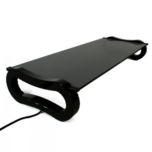 특히 고급스러운 5mm 두께의 블랙컬러 강화유리를 사용하고 고급스러운 하이그로시 재질을 채택해 책상위를 우아하게 꾸밀 수 있을 뿐 아니라 선반 밑의 공간을 활용 할 수 있어 책상을 깔끔하게 정리할 수 있다.