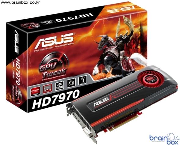 - 현존하는 가장 빠른 GPU인 HD7970 GPU와 3GB DDR5 메모리 탑재 감동적인 기술 혁신과 끊임 없는 완벽의 추구로 전세계 마더보드 및 PC 부품 시장을 선도하고 있는 아수스(kr.asus.com)는 AMD의 최신 플래그쉽 GPU인 HD7970과 3GB GDDR5 메모리를 탑재하고 최대 1.26GHz 클럭까지 오버클럭이 가능한 아수스 GPU Tweak 기능으로 무장한 아수스 HD7970 그래픽 카드를 출시한다고 밝혔다.