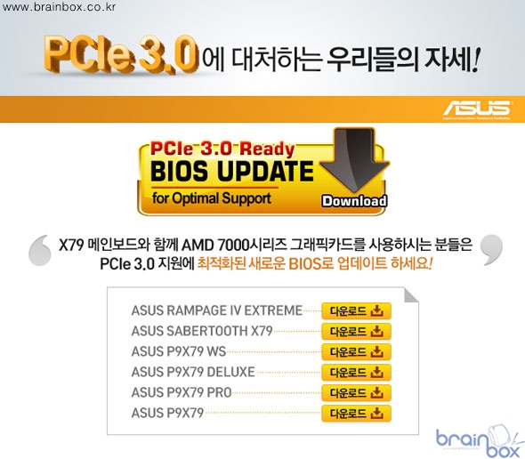이번 ASUS P9X79 메인보드 시리즈 바이오스는 X79칩셋 메인보드 사용자들은 필수 업데이트 바이오스로 PCI-E 3.0 규격의 고속 동작에 최적화된 성능을 발휘할 수 있도록 개선된 것이다.