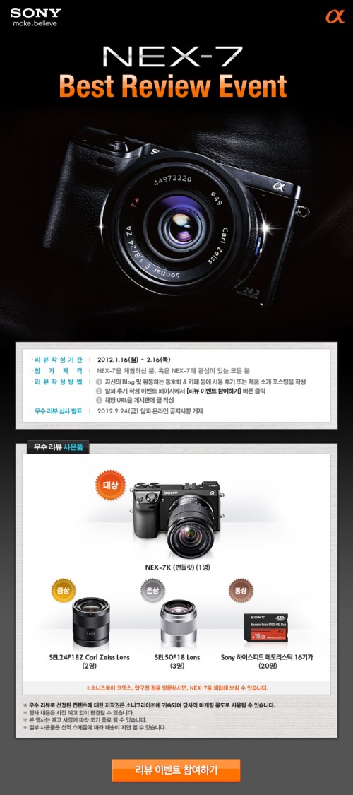 소니코리아, 알파 NEX-7 후기 이벤트 실시