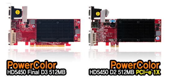 인하된 제품은 '파워칼라 HD5450 D2 512MB PCI-E 1X'과 '파워칼라 HD5450 D2 512MB