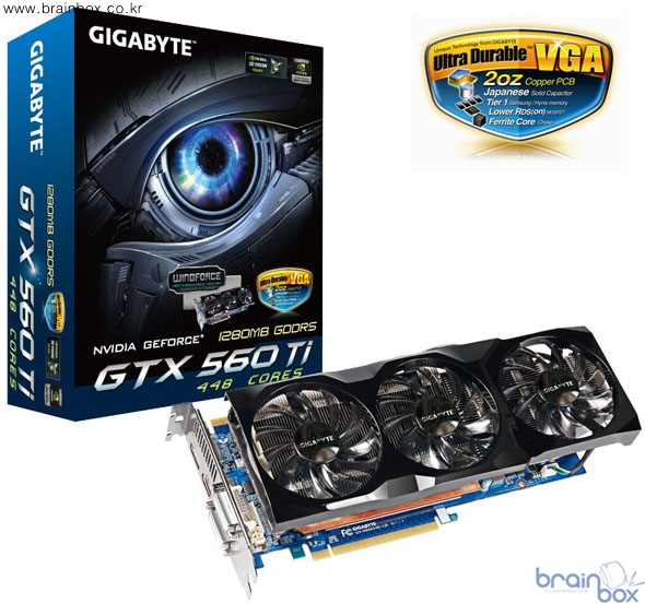 이번에 국내에 단독 출시되는 GIGABYTE GTX560 Ti 448코어 제품은 이미 작년 11월 북미, 북유럽 등 특정 지역에서만 한정수량으로 출시되었던 제품이다. 이 제품은 NVIDIA사의 글로벌 세일즈 전략에 따라 아시아 국가에는 공급을 할 수 없었지만 최근 GIGABYTE사와 NVIDIA사의 글로벌 마케팅 협약에 따라 올해 1월부터 국내에도 정식 공급 할 수 있게 되었다. 이번에 단독으로 선보이는 지포스 GTX560 Ti 448코어 제품은 제이씨현시스템㈜를 통해 1000개 한정 수량으로 독점 공급될 예정이다. 이번에 국내에 선보이는 GTX560 Ti 448코어 제품은 상위 제품인 지포스 GTX570 제품(480개의 쿠다 프로세서)과 비교하여, 이보다 적은 448개의 쿠다 프로세서를 탑재 하였지만 이를 제외한 기타 스펙 상의 차이(코어 및 메모리 성능)가 거의 없다고 알려져 있다. 게다가 오버클러킹 시에는 이미 많은 벤치마크 결과에서도 알 수 있듯이 레퍼런스 지포스 GTX570을 상회하는 퍼포먼스를 보여주고 있다. 이 제품은 GIGABYTE社가 자랑하는 2oz Ultra Durable VGA(이하:UDV) 설계기술로 디자인 되어 있으며 제품의 뛰어난 안정성을 보장하기 위해 내구성이 좋은 최고급 부품들을 채택하고 있다. 또한 사용자의 편의를 극대화하고 그래픽카드의 상태를 한눈에 볼 수 있는 소프트웨어 GIGABYTE Easy Boost 튜닝 유틸리티가 포함되어 있다. GIGABYTE Easy Boost를 통해 제품 사용자들이 직접 Over-clocking 튜닝, OSD tuning, 하드웨어 모니터링을 실시간으로 할 수 있다.