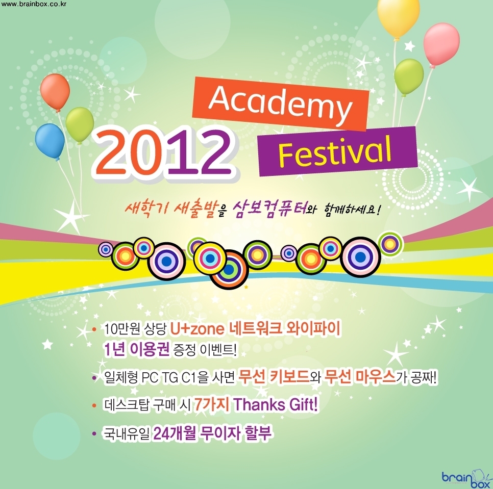 2012년 2월 한 달간 TG삼보 제품구매자에게 다양한 혜택 제공 TG삼보컴퓨터(www.trigem.co.kr 대표 손종문)는 2012년 졸업 입학 시즌을 맞이하여 다양한 무료 혜택을 제공하는 ‘2012 아카데미 페스티벌’을 진행한다. 새로운 세계로 첫 발을 디디는 예비 신입생들을 대상으로 진행하는 ‘2012 아카데미 페스티벌’은 2012년 2월 한 달간 대상 제품 구매자에게 다양한 혜택을 제공 하도록 초점을 맞췄다. 그 시작으로 행사기간 중 TG삼보 제품을 구매한 모든 고객에게는 지식의 보고 ‘브리태니커 백과사전 DVD’를 무상 증정한다. 240여년동안 ‘지식의 세계 표준’으로 인정받아온 브리태니커 백과사전 전27권의 방대한 지식을 한 장의 DVD 에 담아낸 ‘브리태니커 백과사전 DVD’는 선행학습을 준비하는 예비 신입생들의 충실한 학업동반자가 될 것으로 예상된다. 또한, 고가의 컴퓨터 제품 구매에 부담을 느끼는 예비신입생과 가족을 위해 TG삼보 전문 몰인 i머스트 사이트(www.imust.co.kr)를 통해 3개월~ 최대 24개월 무이자 할부 프로그램을 진행한다. 초기비용 부담 없이 고가의 PC를 구매할 수 있도록 혜택의 폭을 넓혔으며, 노트북PC에서 데스크톱PC까지 대상 제품도 대폭 확장했다. 노트북을 구매하는 고객에게 LG U+ WIFI 무료이용권 및 다양한 기프트를 제공한다. 이 외에도 TG삼보의 잇(it)스타일 올인원PC ‘TG C1’을 구매하는 고객에게는 무선 키보드와 무선 마우스 세트를 무상으로 제공하는 등, 다양한 혜택을 제공할 것이라고 밝혔다.