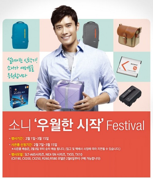 소니코리아(대표 이토키 기미히로 www.sony.co.kr)는 신학기를 맞아 오는 3월15일까지 소니코리아 디지털카메라 제품 및 핸디캠 제품을 구매한 고객에게 신학기에 어울리는 다양한 사은품을 증정하는 ‘우월한 시작 페스티벌’을 진행한다고 밝혔다.